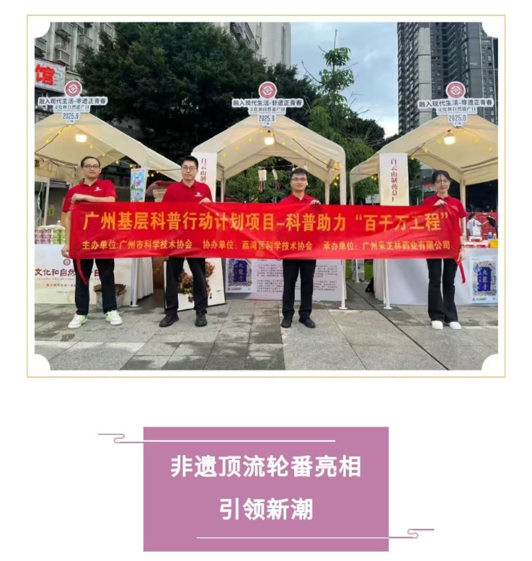 本次活动由广州市文化广电旅游局主办,中共广州市荔湾区委宣传部、广州市荔湾区文化广电旅游体育局、广州市文化馆(广州市非物质文化遗产保护中心)、广东民间工艺博物馆、广州市荔湾区金花街道办事处承办。白云山制药总厂为本次活动独家冠名单位。“采芝林传统中药文化”参与其中,不仅为市民们普及中药文化知识,更是响应“百千万工程”的号召,以实际行动助力传承和弘扬传统中药文化。