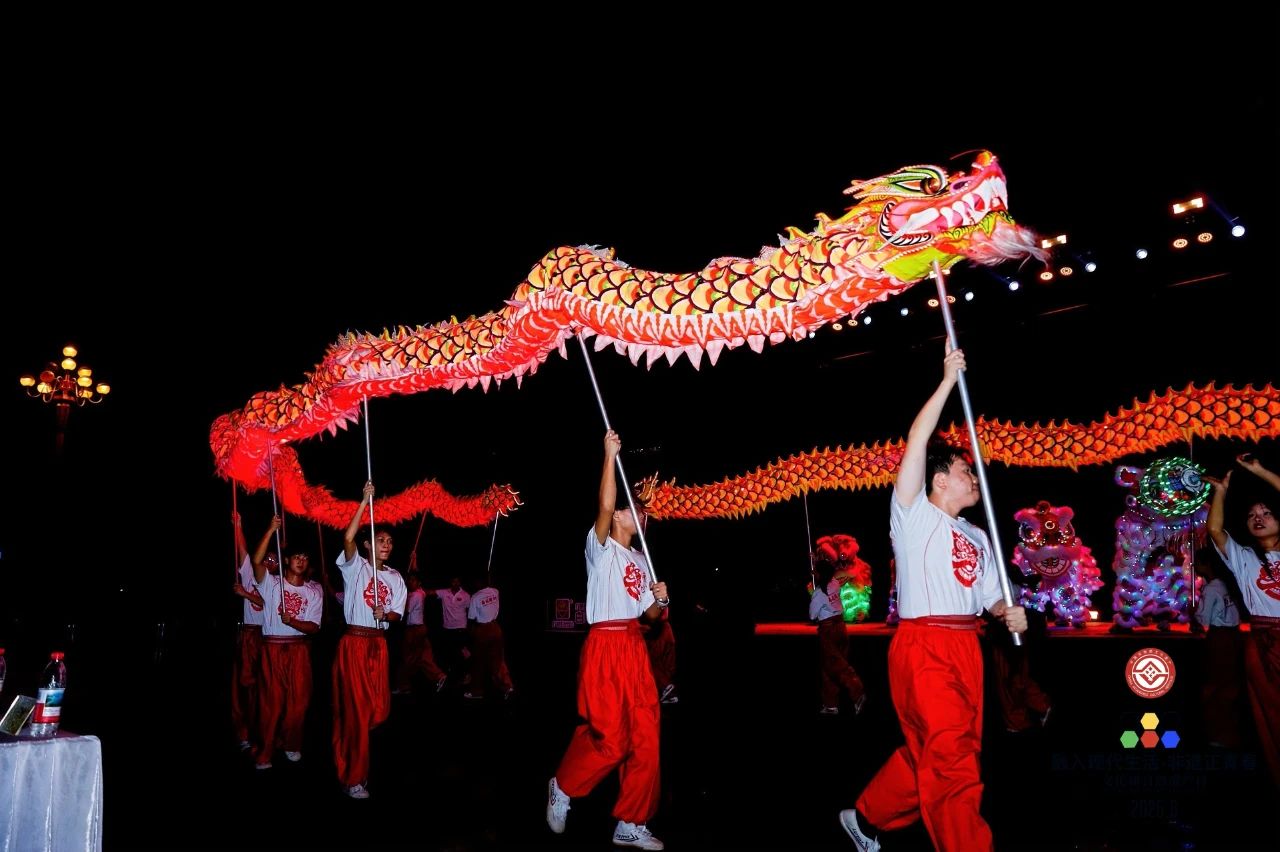 活动伊始,省级非遗项目鳌鱼舞“游”上舞台,国家级非遗狮舞(广东醒狮)与市级非遗广府龙舞联袂上演《夜光狮、夜光龙》,将传统醒狮与科技元素巧妙融合。多位国家级传承人亮相红毯,展现匠人匠心守护传承中华文化的卓越风采。