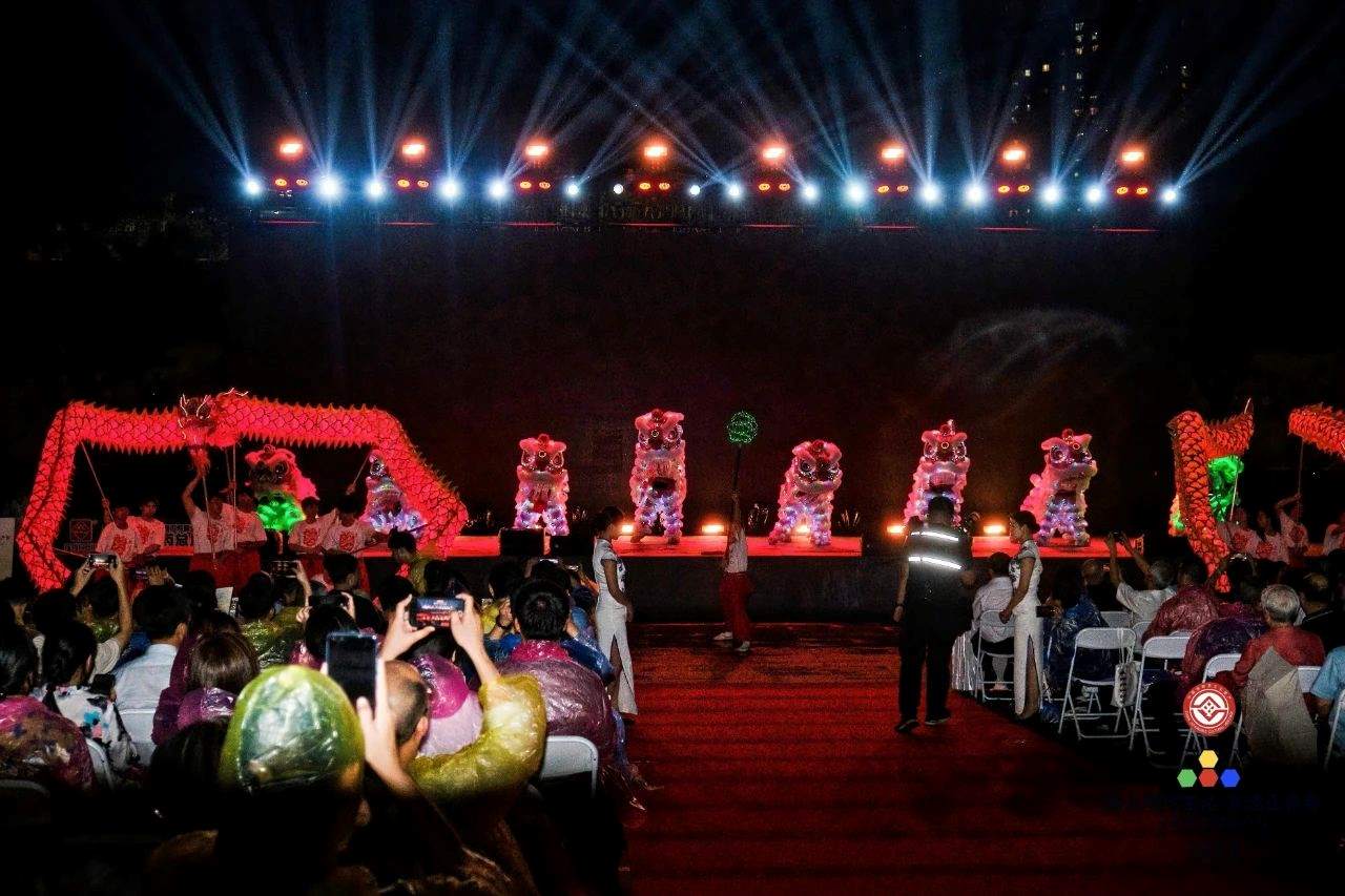 夜光龙狮随铿锵鼓点舞动