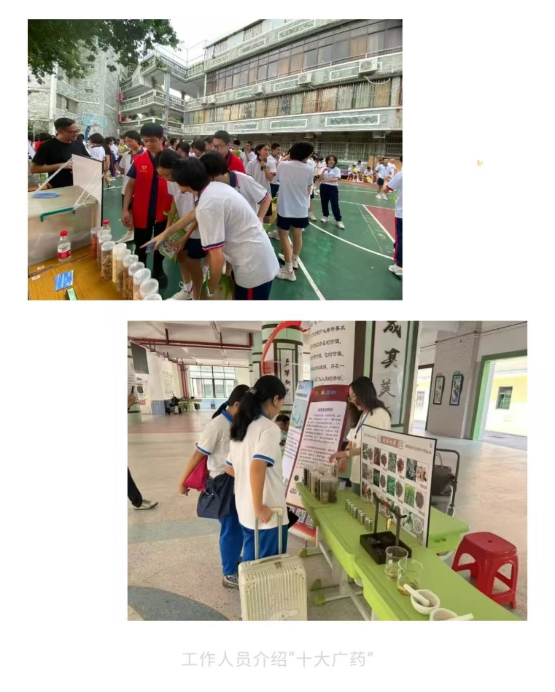 活动现场,围绕生活常见中药材知识、家庭常用药品、医疗器械、化妆品知识等科普重点,安排了专家主题讲座、安全用药有奖问答、视频播放等环节。同时,校园内还设置了多个主题鲜明的科普宣传摊位。采芝林传统中药文化的展位吸引着学生们的目光。工作人员详细介绍了“十大广药”,通过生动的讲解和实物展示,向学生们介绍每种药材的产地、功效及临床应用,让学生们近距离观察药材形态,感受道地药材的独特价值。