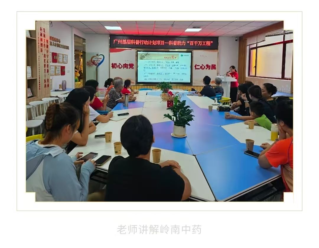 课程伊始,老师为学员们系统讲解了岭南地区道地药材的丰富种类与独特功效,包括“四大南药”、“十大广药”等。从化橘红的理气化痰,到广藿香的化湿和中,再到春砂仁的温脾开胃,讲师通过实物展示、性味辨析与典故讲述,将深奥的中医药知识变得生动易懂,让居民们对身边常见药材的药用价值有了全新而深刻的认识。