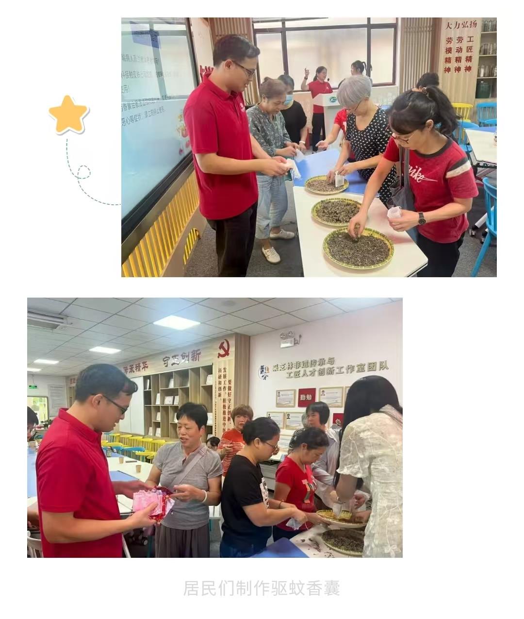为了有效预防“基孔肯雅热”等蚊媒传染病,课程还设置了中药驱蚊香囊制作互动环节。在老师的指导下,居民们纷纷动手,精心挑选搭配广藿香、艾叶、香茅、薄荷等具有驱蚊功效的中药材。混合、装袋、束口……每一步都专注而细致,空气中弥漫着多种草药混合的馥郁香气。不一会儿,一个个兼具实用性与文化韵味的精美香囊便在居民们手中诞生。