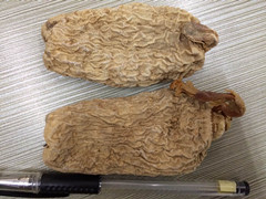 三等:与一等区别为断面角质,牙白色或棕黄色,稍有空心,每公斤90支以内,大小均匀。