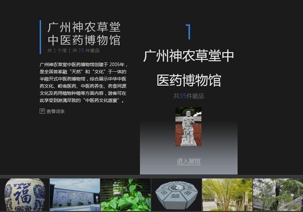 2015年1月30日,神农草堂数字博物(http://baike.baidu.com/museum/gzsnctzyy)正式上线,该数字博物馆是由百度百科与广州神农草堂中医药博物馆共同建立的,数字化、立体化的权威知识普及平台,为广大网友提供了足不出户逛博物馆的机会,感受中医药文化与互联网结合带来的知识魅力。