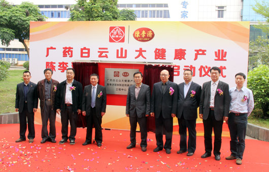 广药集团大健康产业办公室副主任张永涛、白云山陈李济公司董事长石洪超、总经理梁铭基、陈李济百年陈皮工艺传承人莫国强等领导为广药白云山大健康产业陈李济百年陈皮传承(研究)工程中心揭牌
