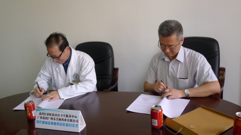 彩虹街社区卫生服务中心温主任与我司董事长孔箭签订合作协议。